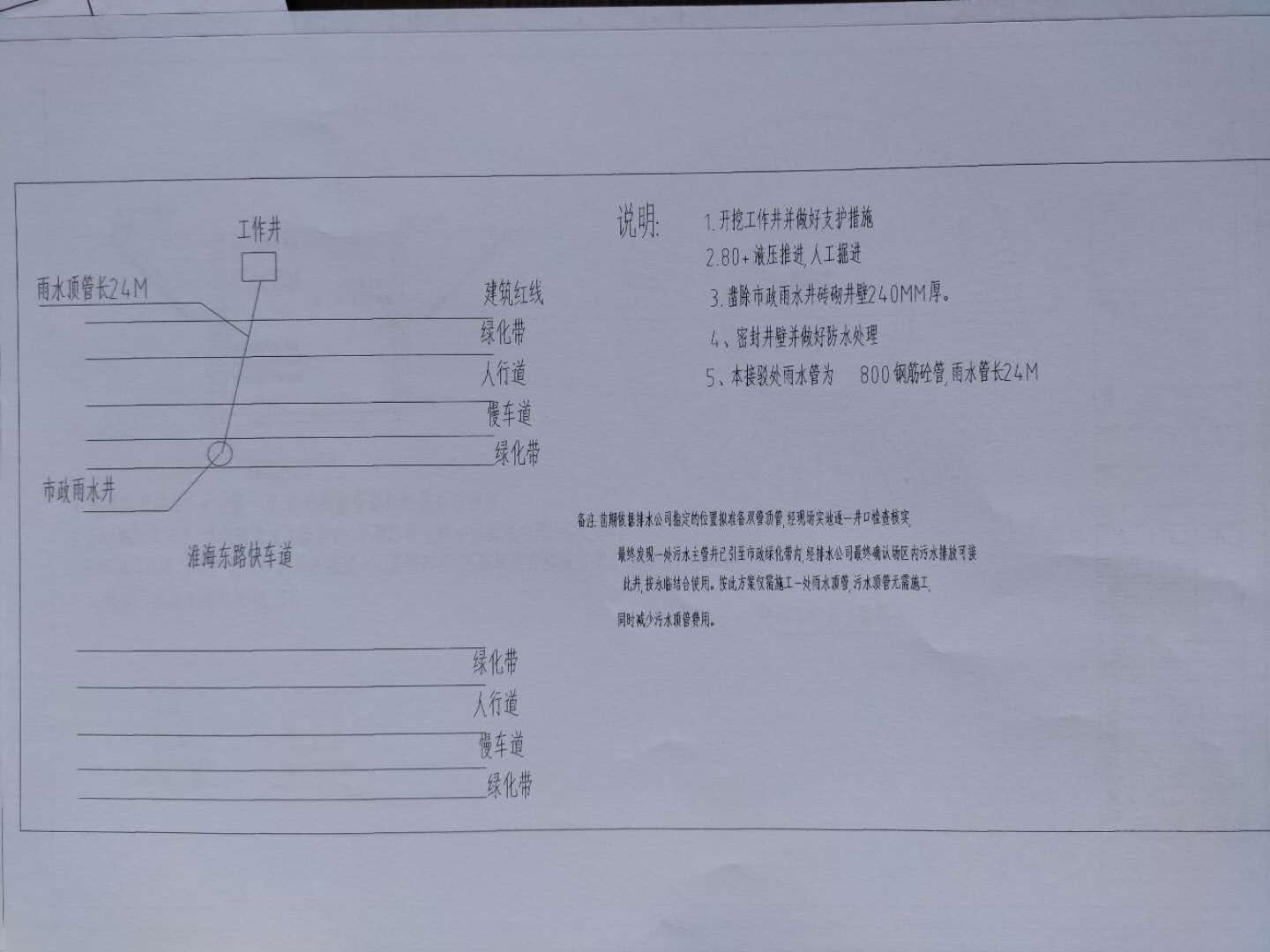 4、本次招標(biāo)范圍:投標(biāo)人完成招標(biāo)人紅線范圍內(nèi)指定的區(qū)域頂管至外線外淮海東路上指定的市政雨水井,保證排水通暢及政府相關(guān)部門驗收標(biāo)準(zhǔn),頂管采用直徑Φ800鋼帶涵管,具體詳見清單。