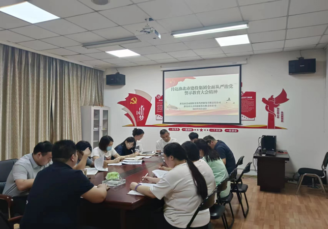 9月12日勞代公司黨支部書記周湘宸同志主持召開會議,向公司黨員干部及職工傳達學(xué)習了淮北市建投集團全面從嚴治黨警示教育大會的會議精神,副總經(jīng)理王瑞、全體員工參加會議。