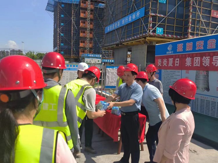 2024年8月2日,集團(tuán)公司黨委專職副書記陳偉分別赴狀元府、悅溪杏林項(xiàng)目“夏季送清涼”,為一線職工送上防署降溫物品,對(duì)他們?cè)诟邷叵氯詧?jiān)守工作崗位表示敬意。同時(shí),詳細(xì)詢問了項(xiàng)目建設(shè)情況和項(xiàng)目職工的生活情況,叮囑項(xiàng)目管理人員要避開高溫時(shí)段,注重防暑降溫工作,抓好項(xiàng)目建設(shè),確保安全生產(chǎn)。