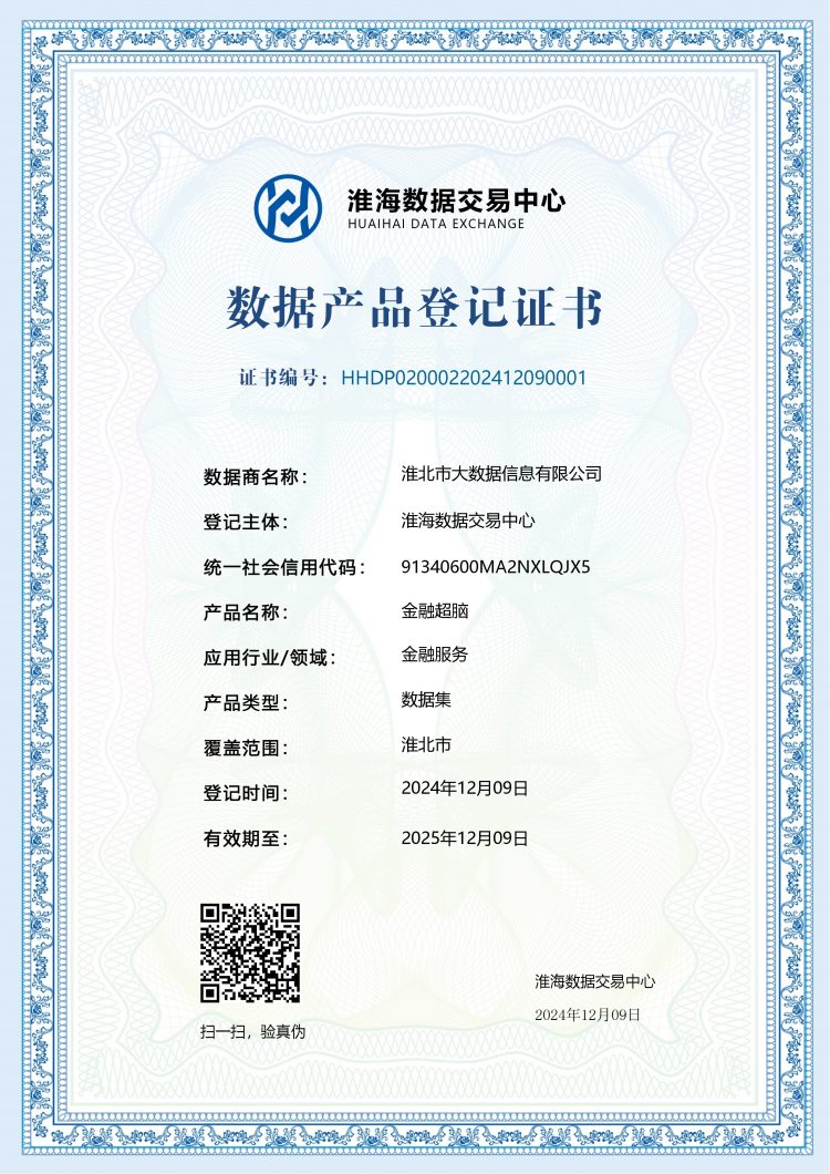淮海數(shù)據(jù)交易中心作為淮海經(jīng)濟(jì)區(qū)數(shù)據(jù)交易的關(guān)鍵樞紐與創(chuàng)新高地,在數(shù)據(jù)交易規(guī)則制定、數(shù)據(jù)產(chǎn)品創(chuàng)新孵化、數(shù)據(jù)安全保障機(jī)制以及數(shù)據(jù)要素市場(chǎng)培育等多方面均積累了豐富且前沿的經(jīng)驗(yàn)與實(shí)踐成果?;幢笔写髷?shù)據(jù)信息有限公司積極和淮海數(shù)據(jù)交易中心對(duì)接,深入學(xué)習(xí)與交流,探索數(shù)據(jù)領(lǐng)域發(fā)展新路徑與新機(jī)遇,拓展數(shù)據(jù)要素流通市場(chǎng),分析探討數(shù)商合作生態(tài),近日該公司數(shù)據(jù)助貸產(chǎn)品“金融超腦”通過(guò)淮海數(shù)據(jù)交易中心的認(rèn)證,獲得數(shù)據(jù)產(chǎn)品登記以及數(shù)據(jù)商資格。