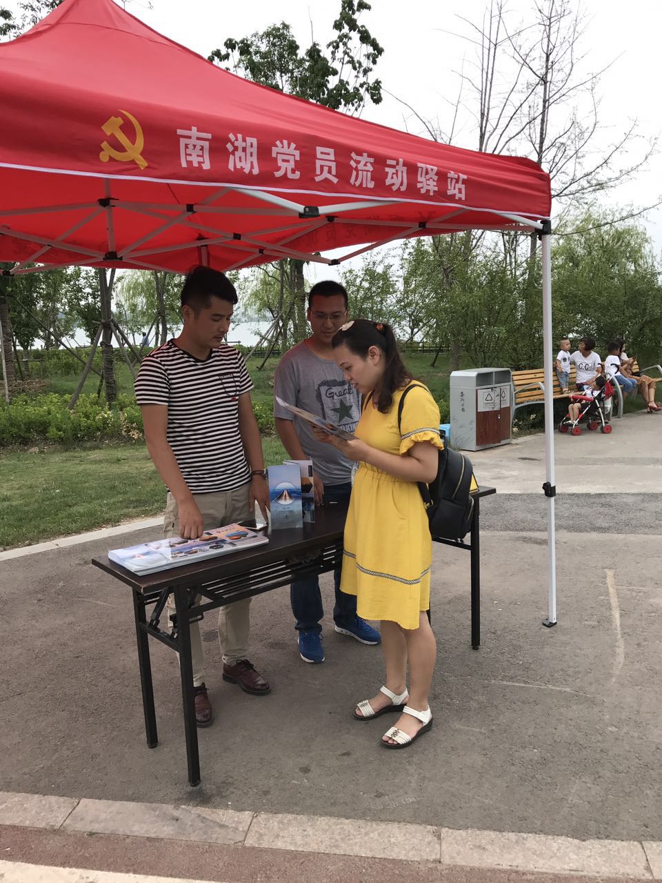 為了慶祝中國共產(chǎn)黨誕辰96周年,7月1日,南投黨支部通過“南湖黨員流動驛站”組織黨員深入景區(qū),服務(wù)游客。在炎炎夏日為游客免費提供純凈水,并贈送南湖宣傳冊一份。一直以來,南投黨支部結(jié)合景區(qū)實際情況,把“黨旗更鮮艷、游客更滿意”作為根本追求,幫游客解決遇到的實際困難和問題,以優(yōu)質(zhì)高效的服務(wù),促進(jìn)景區(qū)經(jīng)濟發(fā)展。讓游客在欣賞美麗風(fēng)景的同時,親身體驗?zāi)虾狞h建工作和黨員服務(wù),享受不一樣的品牌管理與服務(wù),努力把南湖景區(qū)建設(shè)成為一個新型的現(xiàn)代旅游勝地。